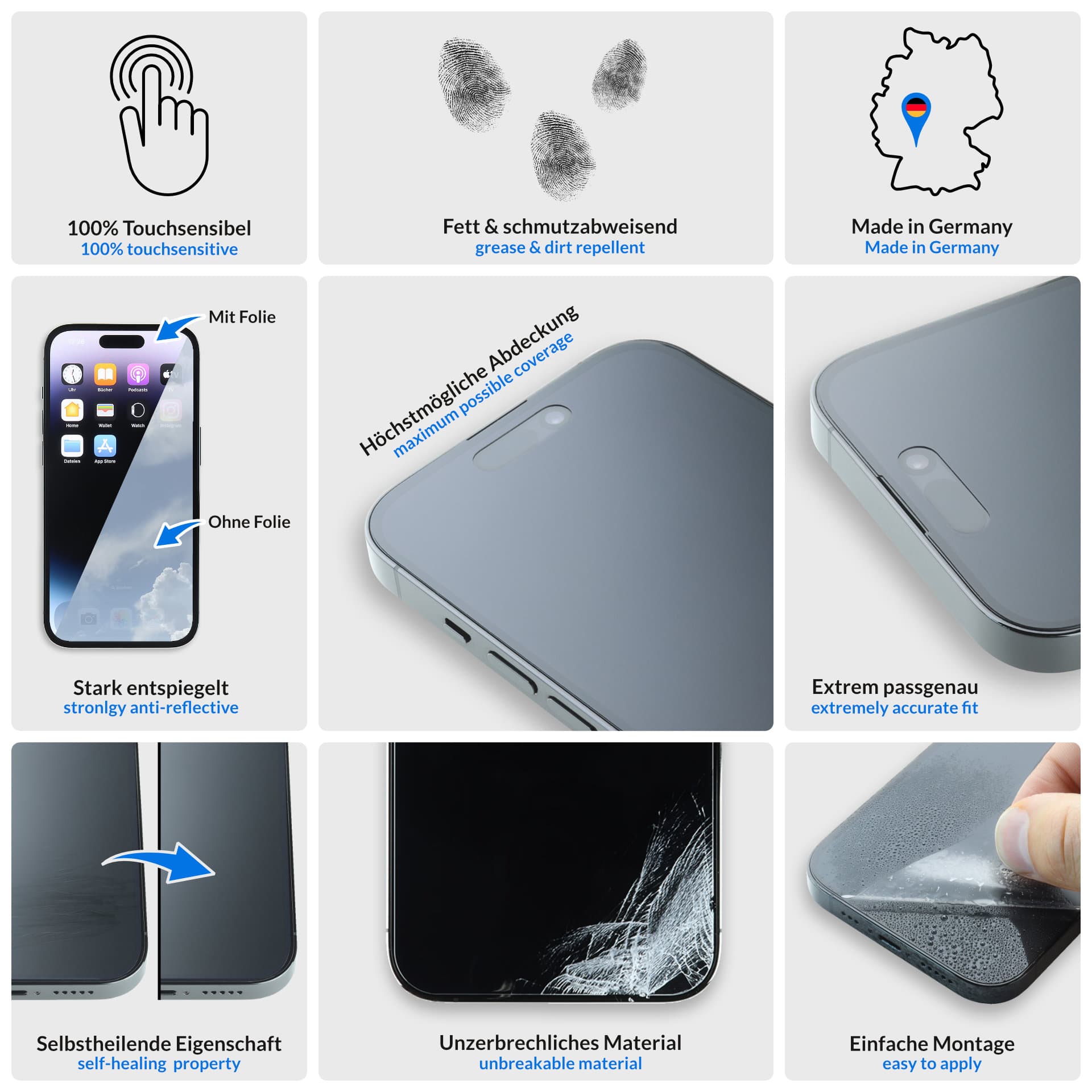 • Deckt das gesamte Display bis zum Rand ab – für maximalen Schutz ohne Hülle.